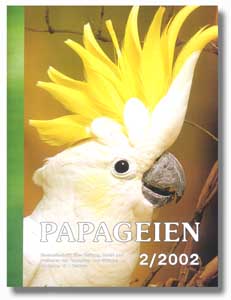Die Blaustirnamazone Wolfgang Seum Inhalt: Die Blaustirnamazone gehört wohl zu den am meisten gepflegten Amazonenarten. Laut Bundesamt für Ernährung und Forstwirtschaft wurden beispielsweise 1984 immerhin 7.438 Individuen importiert. Diese Amazone ist offenbar wegen ihrer Intelligenz, ihres schönen Äußeren sowie ihrer unkomplizierten Haltung besonders beliebt. Die Vögel können sich schnell an neue Gegebenheiten anpassen und neigen nicht zu psychischen Störungen. Mittlerweile vermehren sie sich oft in Menschenobhut, und man ist nicht mehr auf Wildfänge angewiesen. Haltung und Zucht des Aymarasittichs Matthias Reinschmidt Inhalt: Der Aymarasittich (Psilopsiagon aymara, früher Bolborhynchus aymara) ist eine Papageienart, die schon seit vielen Jahren gehalten und gelegentlich auch gezüchtet wird. Die Sittiche stellen etwas höhere Ansprüche an die Pflege, und wo diese erfüllt sind, erfreuen sie ihren Besitzer regelmäßig mit Nachwuchs. Transport von Papageien – gesetzliche Grundlagen Dr. Richard Schöne Inhalt: Bei Tiertransporten müssen hauptsächlich tierschützerische, tierhygienische sowie tierseuchenhygienische Aspekte berücksichtigt werden. Herr Brockner hat in seinem Beitrag "Transport von Papageien" (PAPAGEIEN 5/2001) diese Gesichtspunkte des Transportes direkt oder indirekt angesprochen, ohne jedoch auf die gesetzlichen Grundlagen einzugehen. Herr Brockner merkte kritisch an: "Der Transport von Papageien ist ein Bereich der Haltung, dem in der Vergangenheit wenig Aufmerksamkeit gewidmet wurde." Und: "Es gibt die abenteuerlichsten Varianten, wie Papageien transportiert werden: Sie werden in Pappkartons, Bretterkisten oder sogar im Hanfsack untergebracht." Die Belange der Papageien während des Transportes sind seit einigen Jahren gesetzlich geregelt, und somit ist jeder Papageienhalter verpflichtet, die gesetzlichen Vorgaben einzuhalten. Zubereitung von Keim- und Eifutter Ralph Schmidt Inhalt: Neben den herkömmlichen Mischungen verschiedener Samen als Grundfutter für Sittiche und Papageien sollten je nach Beanspruchung noch zusätzliche Futtermittel angeboten werden. Außer den diversen Obst- und Gemüsesorten sowie Teilen von Grünpflanzen (Vogelmiere, Löwenzahn usw.) bildet Keimfutter ein einfach herzustellendes Zusatzfutter. Um den Speisezettel eines Einzelvogels zu erweitern, Zuchtpaare in Brutstimmung zu versetzen beziehungsweise die optimale Versorgung der Jungvögel zu gewährleisten, werden angekeimte Samen in Verbindung mit Eifutter gereicht. Wie das trockene Körnerfutter auch, muss das Keimfutter den Bedürfnissen der jeweiligen Vogelart entsprechend zusammengesetzt sein. Hierbei sind die Korngröße und die Inhaltsstoffe des Korns wichtige Auswahlfaktoren. Thuja als Papageiennahrung Detlev Franz Inhalt: "Was macht der Halsbandsittich in der Thujahecke?" lautete der Titel einer Fachtagung des Naturschutzbund (NABU) im Februar 2000, die sich mit der Problematik der Ansiedlung nichteinheimischer Pflanzen und Tierarten und ihrer Bedeutung für den Erhalt der biologischen Vielfalt auseinander setzte. Die Behandlung der Probleme um Neophyten beziehungsweise Neozoen, wie die Pflanzen- und Tierarten genannt werden, die sich durch menschliche Einflüsse in einem ihnen "fremden" Landstrich erfolgreich ansiedeln, ist hier nicht das Thema. Was der Halsbandsittich aber in der Thujahecke macht, kann ich als Beobachter des Verhaltens frei lebender Halsbandsittiche einfach beantworten: Er frisst die Zapfen und unterscheidet sich damit nicht von anderen Vögeln. Gefährdung der Papageien und ihrer Lebensräume Jörg Asmus Inhalt: Die Artenvielfalt von Tieren und Pflanzen leidet unter der ständig wachsenden Lebensraumzerstörung. Auch der Bestand einiger Papageienarten hängt unmittelbar vom Vorhandensein bestimmter Habitate ab. [...] In den letzten Jahrzehnten vollzieht sich vor allem in den Tropen ein kaum zu kontrollierender Raubbau an der Natur: Durch die Holzwirtschaft wird der Lebensraum unzähliger Tier- und Pflanzenarten unwiederbringlich zerstört. [...] Der Autor möchte mit diesem Artikel die derzeitige Situation in den verschiedenen Erdteilen anhand einiger Beispiele darstellen. Kleine Gelbwangenkakadus auf Komodo Thomas Arndt Inhalt: Einer der bekanntesten Kakadus ist der Gelbwangenkakadu (Cacatua sulphurea), der in Indonesien auf Sulawesi und einigen vorgelagerten Inseln, den Kleinen Sunda-Inseln sowie auf den Masalembo-Inseln vorkommt. Da der Vogel auf den kleinen Inseln Komodo und Rinca noch wie eh und je zahlreich anzutreffen ist, unbehelligt von Lebensraumzerstörung und Fang, hatte sich der Autor schon lange vorgenommen, sich die Kakadus – und natürlich auch den Waran – auf Komodo anzuschauen. Dr. Rainer Niemann bespricht die folgende Veröffentlichung: I. Smales, P. Brown, P. Menkhorst, M. Holdsworth & P. Holz (2000): Contribution of captive management of Orange-bellied parrots Neophema chrysogaster to the recovery programme for the species in Australia. International Zoo Yearbook 37: 171-178 Im Kleinanzeigenteil der Zeitung haben Abonnenten Gelegenheit, kostenlos ihre Papageien anzubieten, zu tauschen oder zu suchen, bzw. Kontakt mit anderen Papageienfreunden aufzunehmen. In der aktuellen Ausgabe sind über 930 private Kleinanzeigen veröffentlicht.