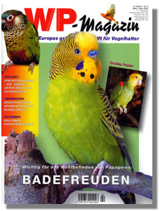Badefreuden - die Körperhygiene bei Papageien (Teil 1) Hildegard Niemann Inhalt: Papageien werden in unseren Haushalten seit Jahrzehnten gehalten. Dabei ist es erstaunlich, wie viele Haltungsfehler uns diese Vögel bereits verziehen haben. Inzwischen gibt es Artikel über Käfige, Bücher über die Ernährung von Papageien, Gesundheitsratgeber und Erste-Hilfe-Leitfäden. Eines aber wurde bisher häufig entweder stiefmütterlich behandelt oder aber ganz übersehen: Die Körperhygiene der Papageien. Grund genug, dass wir uns in dieser und in der nächsten Ausgabe des WP-Magazin ausführlich mit der Gefiederreinigung der Papageienvögel auseinander setzen. Der Pflaumenkopfsittich Inhalt: Der Pflaumenkopfsittich (Psittacula cyanocephala) gehört zu den Papageienarten mit sehr deutlichem Geschlechtsdimorphismus, d.h. Weibchen und Männchen unterscheiden sich in ihrem Aussehen. Obwohl die Vögel leicht zu züchten und sehr angenehme Pfleglinge sind, trifft man sie nur mäßig häufig in Menschenobhut an. Lesen Sie hier mehr über ihr Leben in Freiheit, die Haltungsgeschichte sowie die Vergesellschaftung mit anderen Arten. Spechtpapageien - die unbekannten Zwerge Neuguineas Thomas Arndt Inhalt: Kaum eine Papageiengattung ist bei Ornithologen und Vogelhaltern so unbekannt wie die der Spechtpapageien (Micropsitta). Jeder, der die kleinen Vögel im Freiland zu Gesicht bekommt, schätzt sich glücklich, schließlich ist es ein besonderes Erlebnis. Auch mir ist es so ergangen. Mit Herzklopfen habe ich zwei Vögel das erste Mal auf den Salomonen beobachten können. Die Spechtpapageien fraßen in großer Höhe an einem Baumstamm. Oft habe ich vergebens in den folgenden Jahren in den Wäldern ihres Verbreitungsgebietes gesessen und darauf gewartet, dass ein kleiner grüner Papagei vorbeiflöge, der sich anhand seiner tsiit-tsiit-Rufe als Spechtpapagei zu erkennen gäbe. Spechtpapageien sind die kleinsten Vertreter der Papageienfamilie. Sie erreichen eine Größe von 8,4 cm bis 10 cm sowie ein Gewicht von 10 g bis 17 g. Ihr Schnabel ist deutlich höher als lang und weist eine sehr ausgeprägte Einkerbung auf. Die Läufe und Zehen sind verhältnismäßig lang. Einmalig unter den Papageien sind die verlängerten Schäfte der ansonsten kurzen Schwanzfedern. Sie sind leicht nach unten gebogen und helfen den Vögeln, sich bei der Suche nach Nahrung an den Stämmen und Ästen von Bäumen abzustützen. Lesen Sie hier mehr über die Suche des Herausgebers des WP-Magazins nach diesen faszinierenden Winzlingen. Eine Gartenvoliere entsteht: Ein Vogelhaus für Kanarienvögel Franz Lang Inhalt: Begonnen hat alles beim Autor mit ein paar Kanarienvögeln. Nachdem die ersten Jungvögel ausgeflogen waren, platzte die bestehende Anlage bald aus allen Nähten. Und unter den Jungtieren sind auch noch Vögel dabei, die man sich selbst für die Zucht zurückbehalten möchte. Doch wohin mit ihnen, wenn man keinen Platz zur Verfügung hat? Viele Züchter haben dieses Problem, und so wächst in ihnen der Wunsch, ein neues Vogelhaus zu bauen. Doch wie packe ich die Sache an? Was muss zuerst gemacht werden? Wie geht es weiter? All diese Fragen und noch mehr werden in diesem Artikel beantwortet. Außerdem finden Sie darin Konstruktionszeichnungen zur beschriebenen Voliere. Flugunfähiger Wellensittich Hildegard Niemann Inhalt: Der Verlust der Schwungfedern durch die „Französische Mauser“ bei Wellensittichen zwingt den Besitzer der Vögel, die Haltungsbedingungen zu ändern. Das gilt auch für „flugfaule“, meist ältere Vögel, die durch Bewegungsmangel leicht zu fett werden. In ihrem Brief hat eine Leserin genau dieses Problem, nämlich das ihre beiden Wellensittiche nicht mehr fliegen wollen/können. Lesen Sie hier, welche Tipps unsere Fachfrau Diplom-Biologin Hildegard Niemann dazu parat hat. Eine famose Reise zu Vogelparks in Europa Lars Lepperhoff Inhalt: Im Sommer 2004 führte seine Reise per Zug den Autor dieses Artikels, Lars Lepperhoff aus Ittigen in der Schweiz, durch Frankreich, Belgien, Holland und Deutschland, wo er sich die dortigen Vogelparks, Zoos und Museen anschaute. Zooreisen können ungemein reizvoll, lehrreich und sogar beglückend sein. Erhalten Sie in diesem ausführlichen Artikel über die schönsten und interessantesten Stätten der Vogelhaltung einen Einblick in die Rundreise des Autors. Pieper und ich - Teil 2 Petra Mauersberger Inhalt: In der letzten Ausgabe des WP-Magazin berichtete unsere Leserin Petra Mauersberger aus Ehningen über ihre Erlebnisse mit dem Mohrenkopfpapagei „Pieper“, den sie aus dem Tierheim zu sich genommen hatte. Das Zusammenleben mit dem über 20 Jahre alten, auf den Menschen geprägten Papagei war alles andere als problemlos. Der neugierige Vogel interessierte sich z.B. besonders für glänzende Armaturen, die von ihm angebalzt wurden. Lesen Sie nun im zweiten Teil, wie der selbstbewusste kleine Papagei nach der Eingewöhnung die nächsten Wochen und Monate verbrachte. Die Bürzeldrüse - Bedeutung und Erkrankungen Heike Kalbus & Dr. Anja Petersen Inhalt: Wenn Vögel sich putzen, fällt auf, dass sie häufig mit dem Schnabel an eine bestimmte Stelle oberhalb des Schwanzansatzes greifen oder auch den Kopf daran reiben. Hier befindet sich die so genannte „Bürzeldrüse“, die ausschließlich bei Vögeln vorkommt und die die meisten Vogelarten besitzen. Sie ist z.B. bei fast allen Wasservögeln erheblich größer als bei Bewohnern trockener Lebensräume. Bei mehreren Papageiengattungen der Neuen Welt ist die Bürzeldrüse gar vollständig verkümmert und durch Puderdunen ersetzt worden. Was es mit dieser Hautdrüse auf sich hat, erläutern Ihnen in diesem Artikel unsere Redakteurin Heike Kalbus und Dr. Anja Petersen, Fachtierärztin für Geflügel aus Soltau. Handaufzucht eines Gelbhaubenkakadus Christin Gruszin Inhalt: Schon als kleines Kind hat Christin Gruszin aus Greiz immer von einem Kakadu geträumt. „Wenn ich mal groß bin, dann kaufe ich mir einen Kakadu!